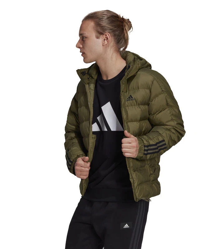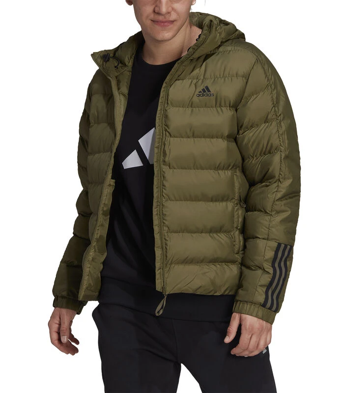 Koude dagen zijn aangenamer als je weet dat je het warm zult hebben. Dit pufferjack adidas beschermt u met hoogwaardige synthetische isolatie voor alle weersomstandigheden. Een geïntegreerde capuchon houdt je uit de wind op winderige dagen. De drie strepen zorgen ervoor dat je er sportief uitziet. Rits het dicht en kom de winter door.