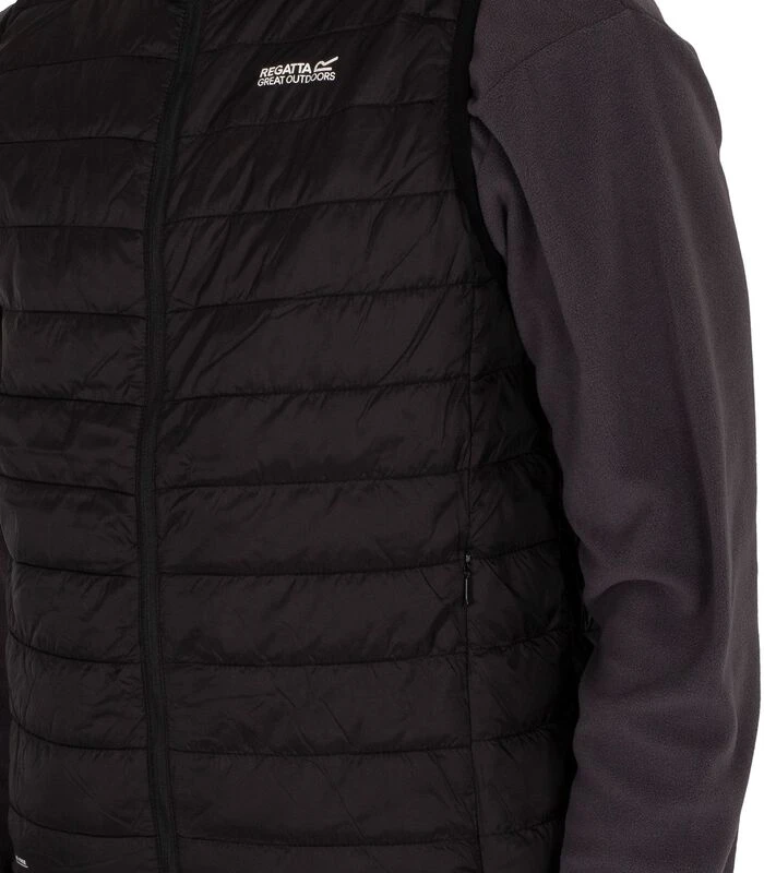 De Hillpack Gilet van Regatta wordt geleverd met ritszakken en een elastische zoom, met gerecyclede isolatie en donsvrije, verenvrije, sneldrogende constructie. Deze bodywarmer heeft een rug om in te pakken. Deze bodywarmer is verkrijgbaar in de kleur zwart en heeft een gedrukt logo op de borst.